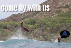 and Daniel is a great hands-on teacher who draws on his experience as a professional surfer and one of the best foilers on Oahu to help beginners figure out the basics. They provide everything for their students, from helmets and floatation vests to the ski, rope, boards, foils, and mast. Beginners will typically go out on a 7'6" Jimmy Lewis board that is 5.5 inches thick and 32 inches wide—in other words, it’s super stable. They like to start people off on a 28-inch mast for added control, as a shorter mast keeps you closer to the water. They combine this with a 220 Go-Foil with a 17.5 back flip tail, which provides a super smooth ride (or at least as smooth as beginning foiling gets!) A 30-foot tow rope puts the students far enough behind the ski that the foil won’t be upset by cavitation from the wake once they are able to get it to lift and start flying!