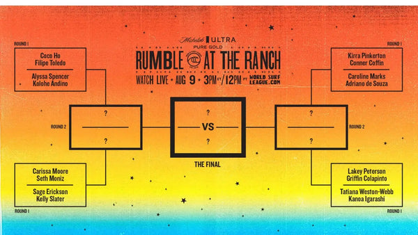 World 16-best surfers names we're pulled out at random by WSL's Pat O'Connell and Jessi Miley-Dyer, and the teams have been selected for the Rumble at the Ranch competition!