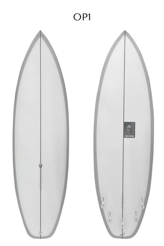 Model: OP1. Standard high-performance shortboard built for fun+ waves.Ability: Beginner to advanced surfers looking for something fun for the mid-sized days.