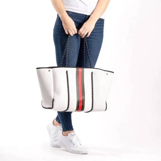 Introducing the Grayson Tote Bags Hawaii, the ultimate choice for stylish and elegant bags that make a statement. Made from high-quality neoprene, these bags are not only durable but also waterproof, making them the perfect accessory for a day at the beach or a weekend getaway.