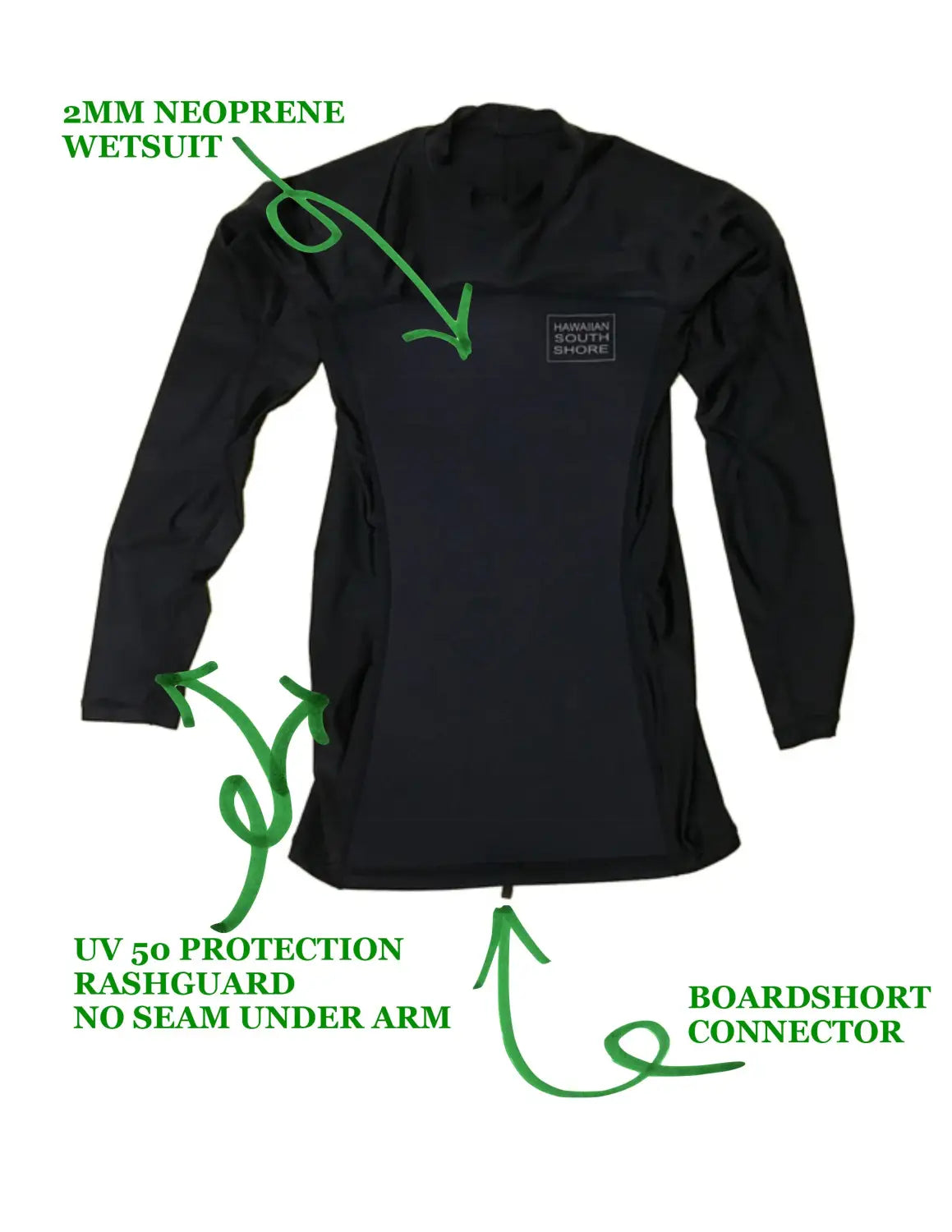 HAWAIIAN SOUTH SHORE HYBRID WETSUIT TOP/RASH GUARD