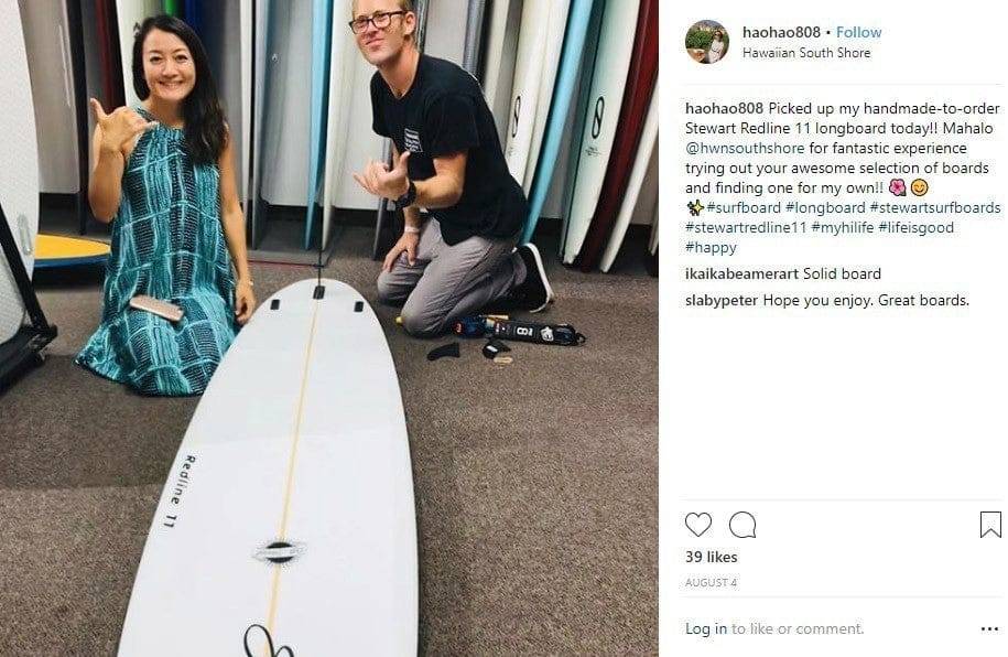 Picked up my handmade-to-order Stewart Redline 11 longboard today!! Mahalo @hwnsouthshore for fantastic experience trying out your awesome selection of boards and finding one for my own!!