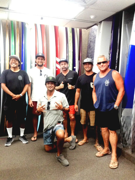 From Left to Right Yu San, Harley, Ezra , CJ Nelson, Kapono visiting Hawaiian South Shore