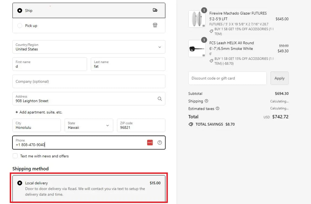 Hawaiian South Shore are thrilled to offer door-to-door delivery to the Leeward side of the South Shore of Oahu. Whether you're in zip codes 96814, 96813, 96826, 96815, 96816, 96821, 96822, 96817, 96819, 96701, 96706, 96707, 96825, or 96818, we've got you covered.