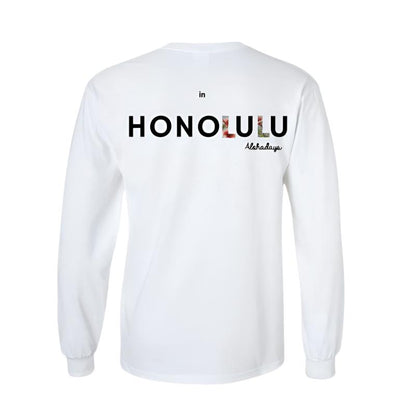 Aloha Days Long Sleeves Tee SURF IN HONOLULU LTD. Made in Hawaii (Small-XLarge) White