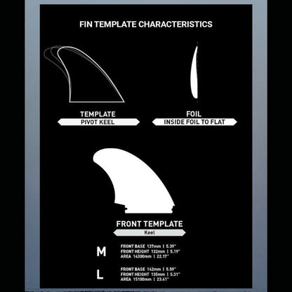 This template has more surface area than any Twin fin, and less surface area than any Keel fin. The Tomo Max Keel is a groundbreaking hybrid of traditional and performance templates, creating an inventive blend of trim, speed, control, and style.