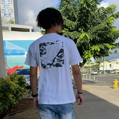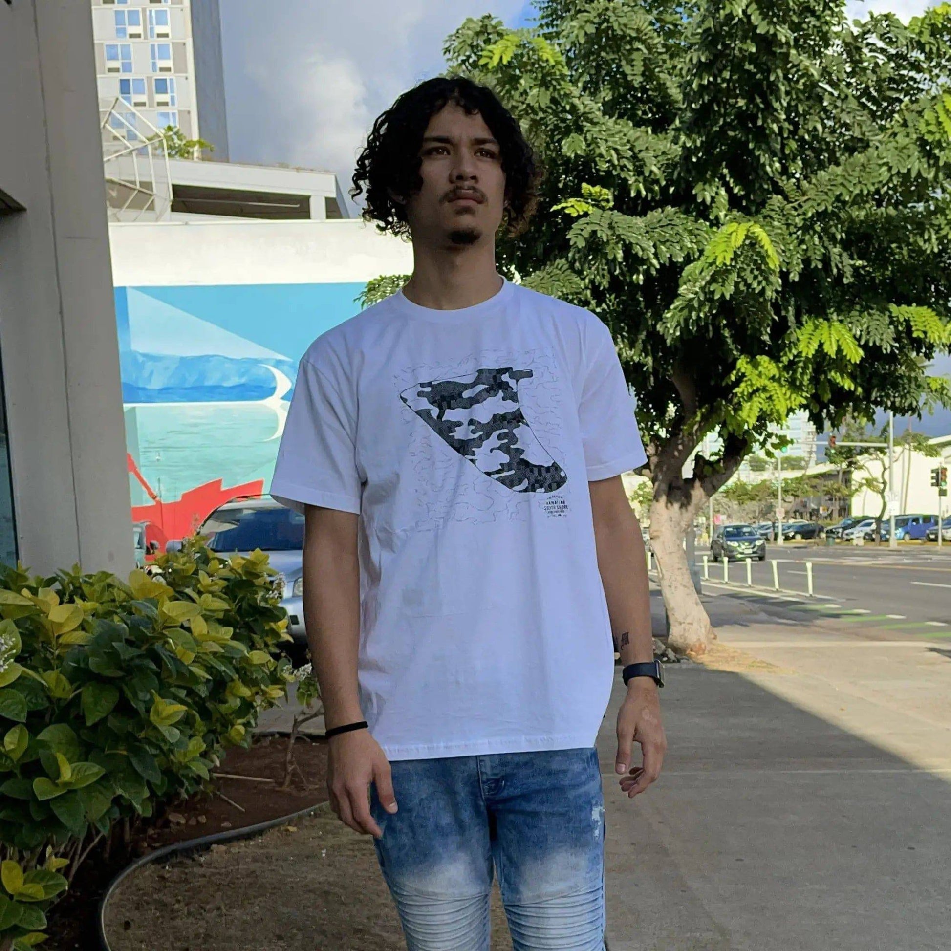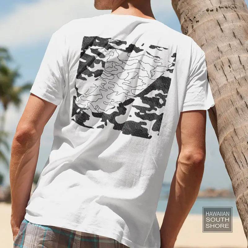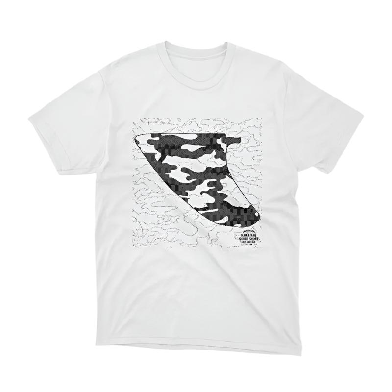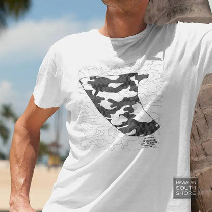 HawaiianSouthShore T-Shirt CAMO FIN Made in Hawaii S-2XL White