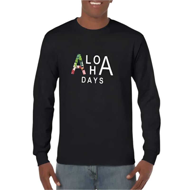 Aloha Days Long Sleeves Tee (Medium-XLarge) Black