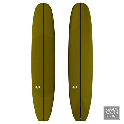 The laminate uses 6oz + 6oz fiberglass on the deck and 6oz + 4oz fiberglass on the bottom, making it heavier than other constructions. This increases the feeling of glide and cruise, and enables traditional riding.