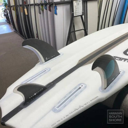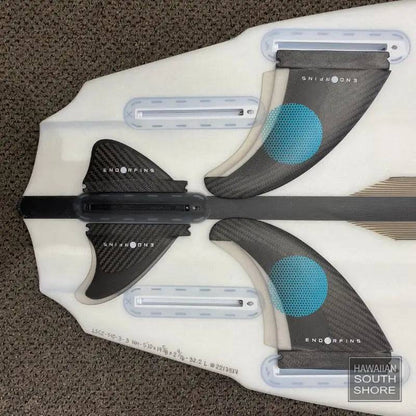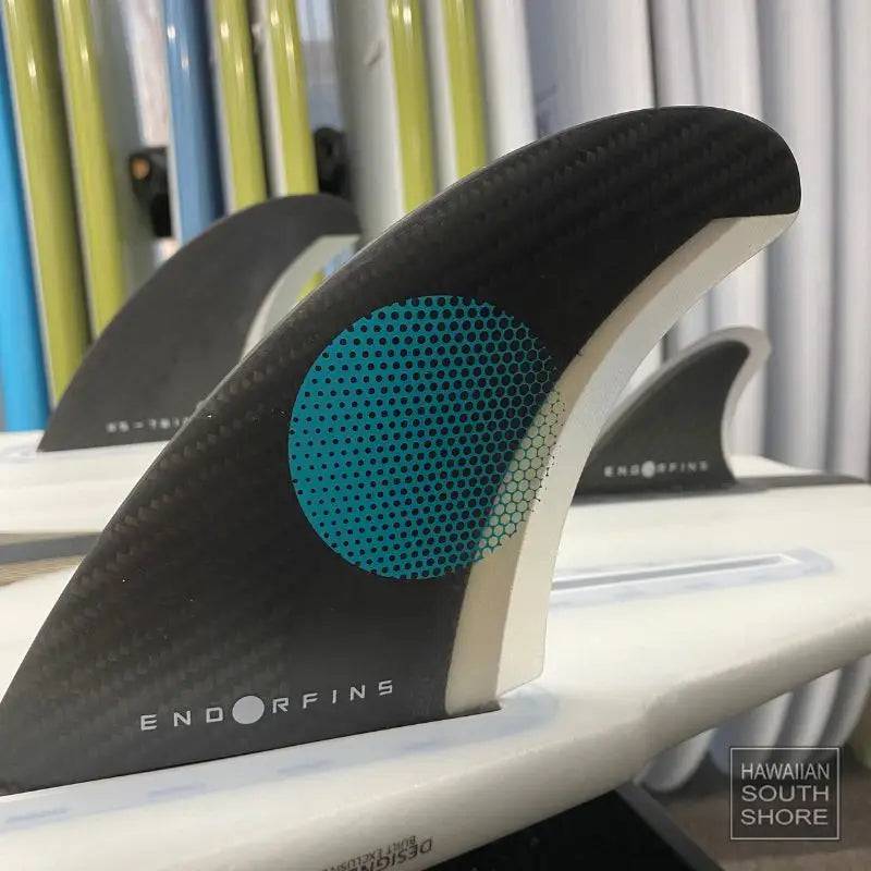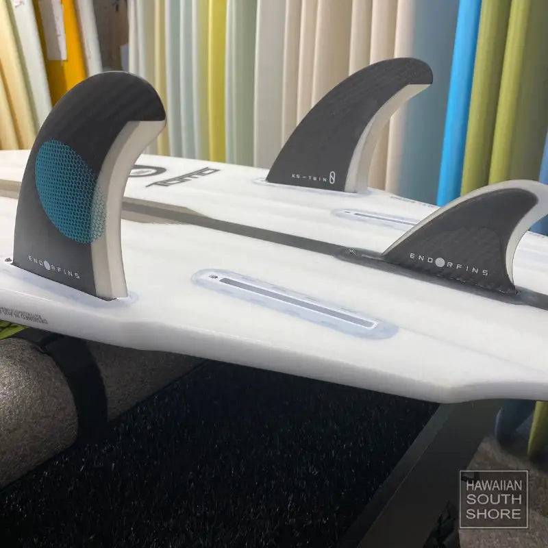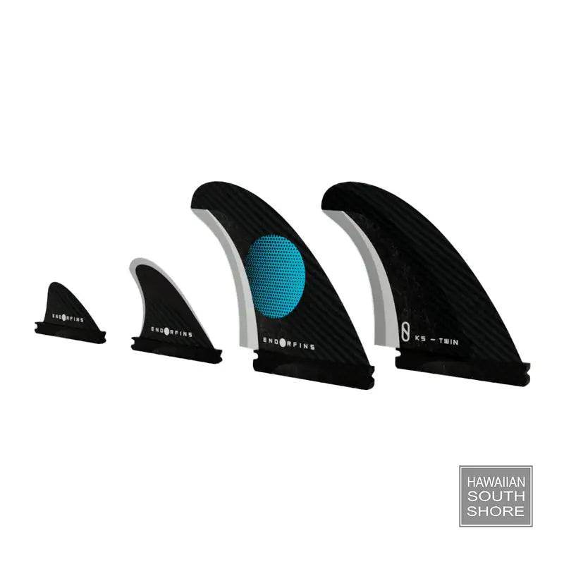The Endorfins Twin + 2 setup from Kelly Slater features four fins that were all designed by the GOAT—a standard set of grovel twin fins, as well as two bonus center stabilizers. Featuring carbon fiber from base to tip, these fins have a grounded base and flex in the tip. A slightly thicker foil provides added drive and a lot of hold through turns, while the refined outline still allows for aggressive turns and progression.