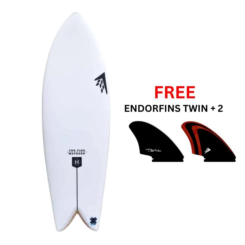 The Too Fish features twin fin boxes, and RM Keels or Kelly Twin+2 fins are recommended for optimal performance. These fins provide excellent drive and maneuverability