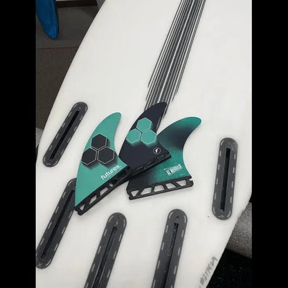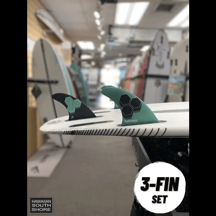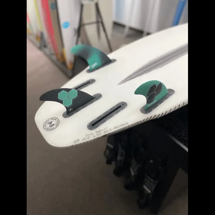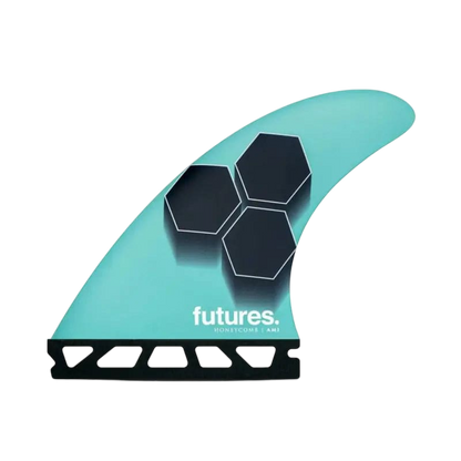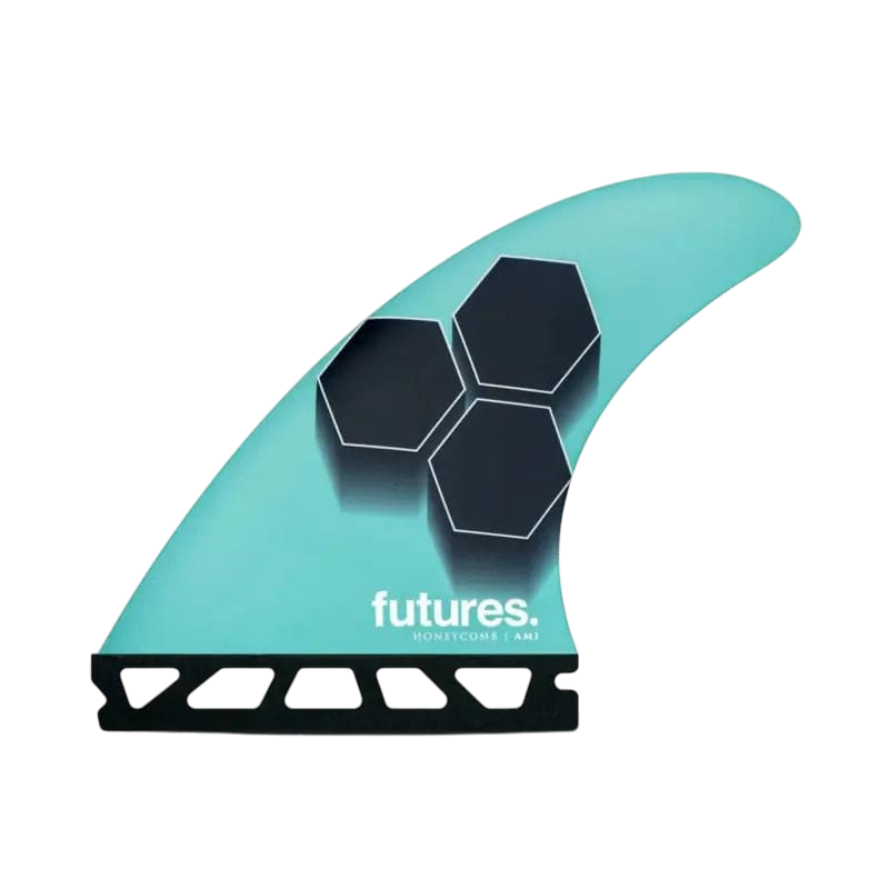 The AM1 Honeycomb designed by legendary shaper Al Merrick of Channel Islands Surfboards is a medium-size thruster in the Rake template category. Featuring a balanced flex pattern, this fin's wider base provides increased drive through turns, making it ideal for high performance surfing. The center fin is smaller than the side fins for increased maneuverability.
