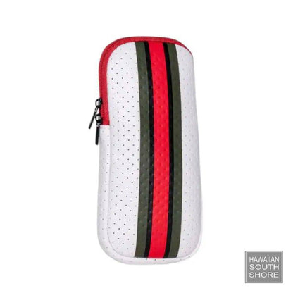 The HA Glasscase Trento offers a stylish and practical way to protect your eyewear. Designed with a white-coated exterior accented by an olive, black, and red stripe, this neoprene eyeglasses case blends modern style with everyday function. Its soft yet durable construction helps safeguard eyewear while remaining lightweight for easy carrying.
