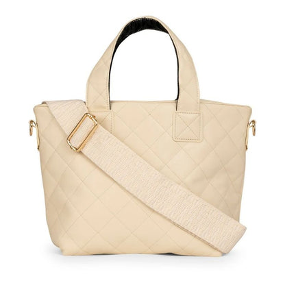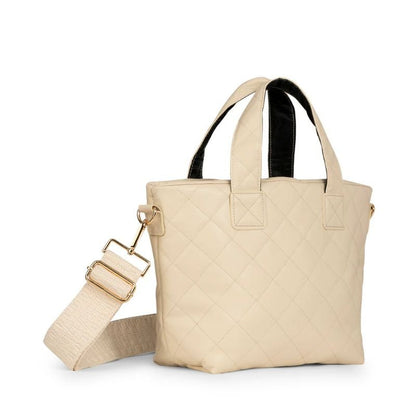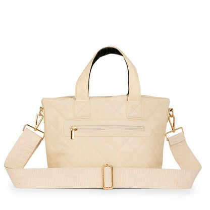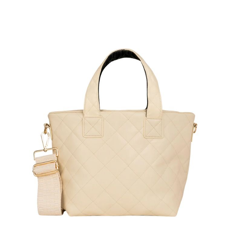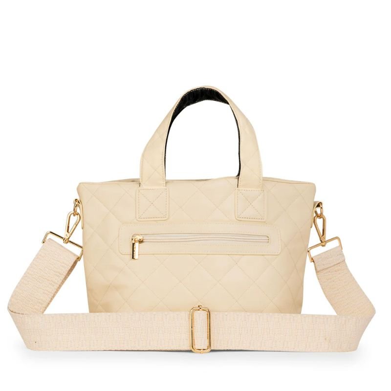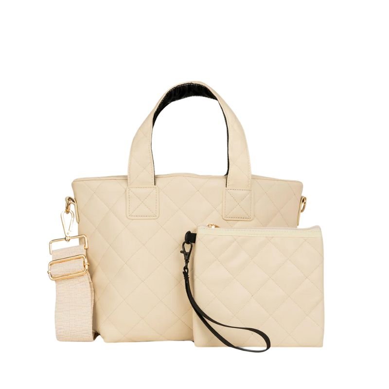 - This puffer compact zip top tote goes from day to night with its streamline design