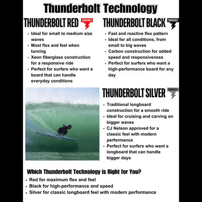 Durability in Overhead Waves:Ā Built to withstand the demands of surfing in slightly overhead waves, the Thunderbolt Red construction ensures a durable and reliable ride.
