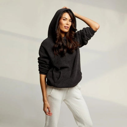 Beloved by celebrities, the Kashwére Pullover Hoodie will give you the five-star treatment you deserve. Made of our signature super-soft Chenilla Classic™ yarn you know and love, you’ll stay extra cozy with the double-lined construction. This hoodie is marshmallowy plush and will give you those cozy, chic vibes that will elevate your mood, no matter what your day has in store. Wear true-to-size for a comfy yet polished look, or wear oversized for a more relaxed, “boyfriend” look. No matter how you wear it, this huggable, cuddleable hoodie is sure to become a staple in your wardrobe. Shopping for a friend or loved one? Our Pullover Hoodie makes a great gift, even for those who seem to already have one of everything!