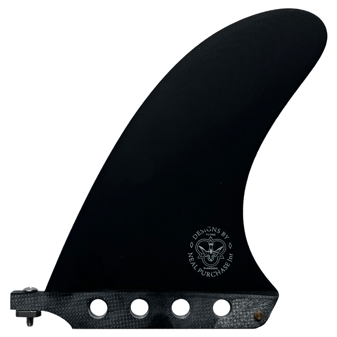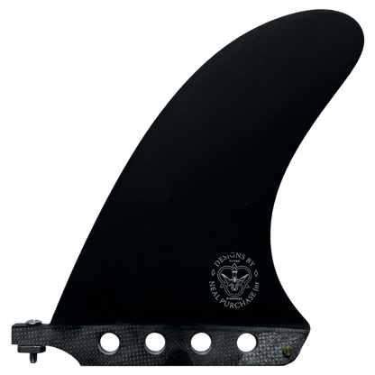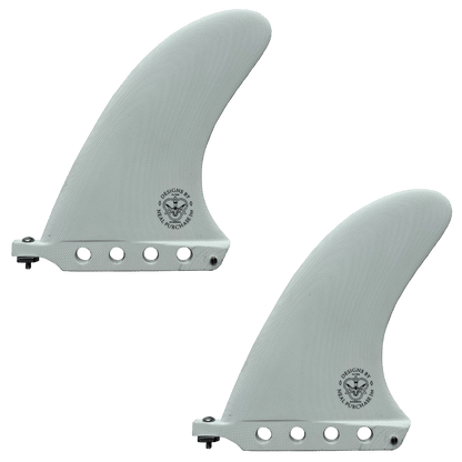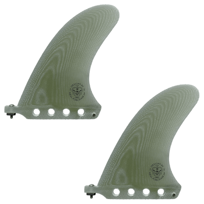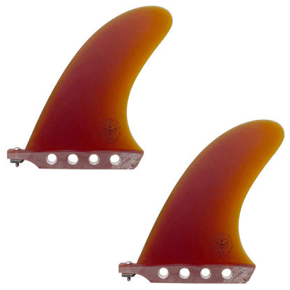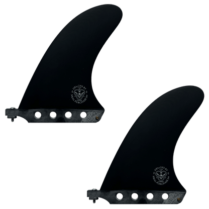 The Duo blends variables of single fins and twin fins and produces a smooth, deep drive unlike anything else I have ridden. I have been refining these fins since 2015, with the concept of creating greater hold and release than a single fin with the speed of a twin. If you’re building a board, the twin center boxes are set 7.0” apart and 7.25” up from the tail with 4 degrees of cant and no toe. You can also use a single DUO with small side bites for a very drivey 2+1 set.