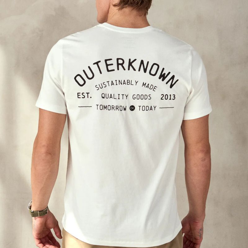 Designed with a relaxed fit, it offers comfortable movement and an effortless look that works in a variety of settings and styles. The standout textual logo gives the tee its signature identity, representing the thoughtful craftsmanship and intention behind every Outerknown piece. Built to feel good and wear well, this tee is more than just a wardrobe staple—it’s a reflection of conscious design rooted in quality and sustainability. Whether you’re drawn to its comfort, its message, or its minimal aesthetic, it’s a dependable everyday piece that you’ll reach for again and again.